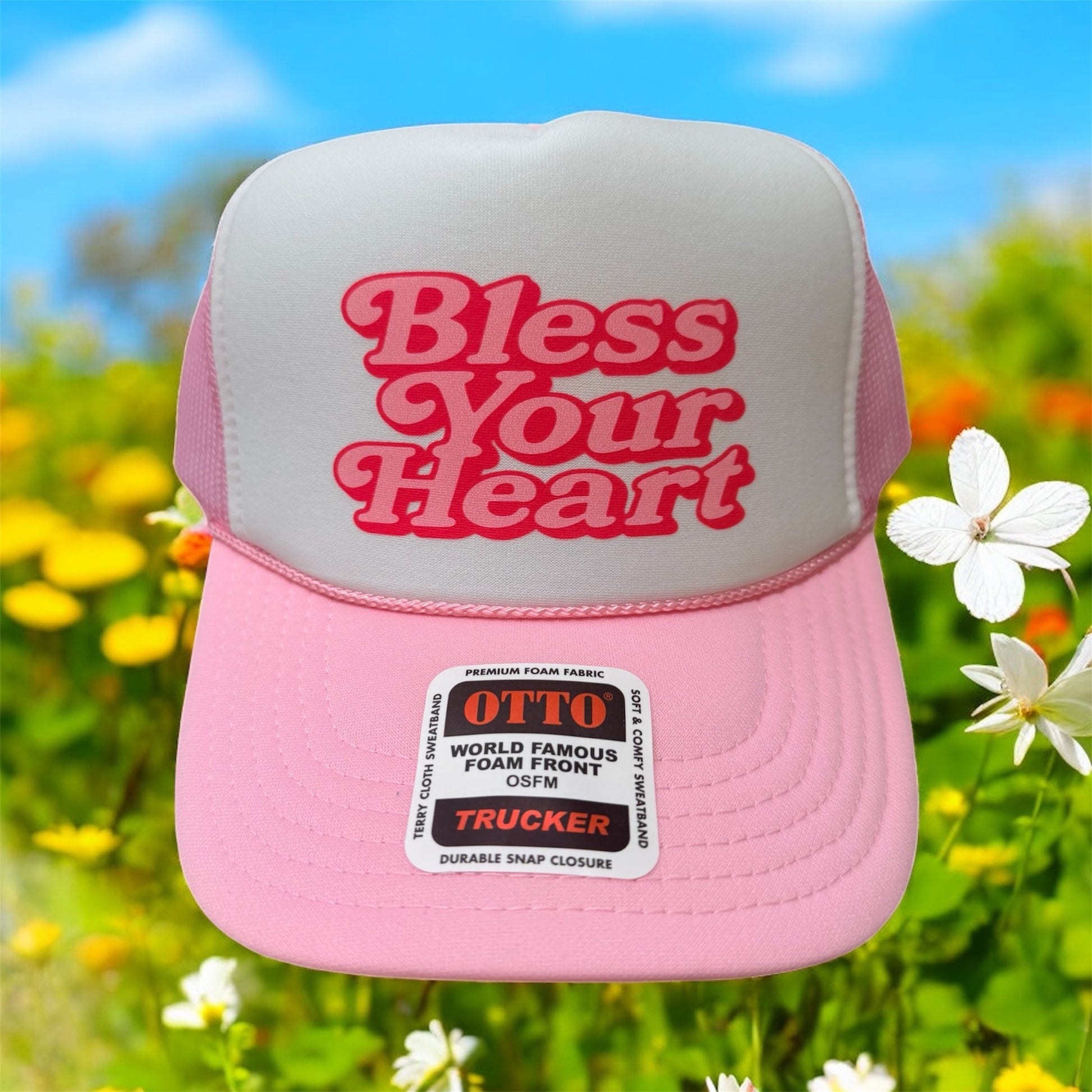 BLESS YOUR HEART- UNISEX LIGHT PINK AND WHITE Trucker Hat